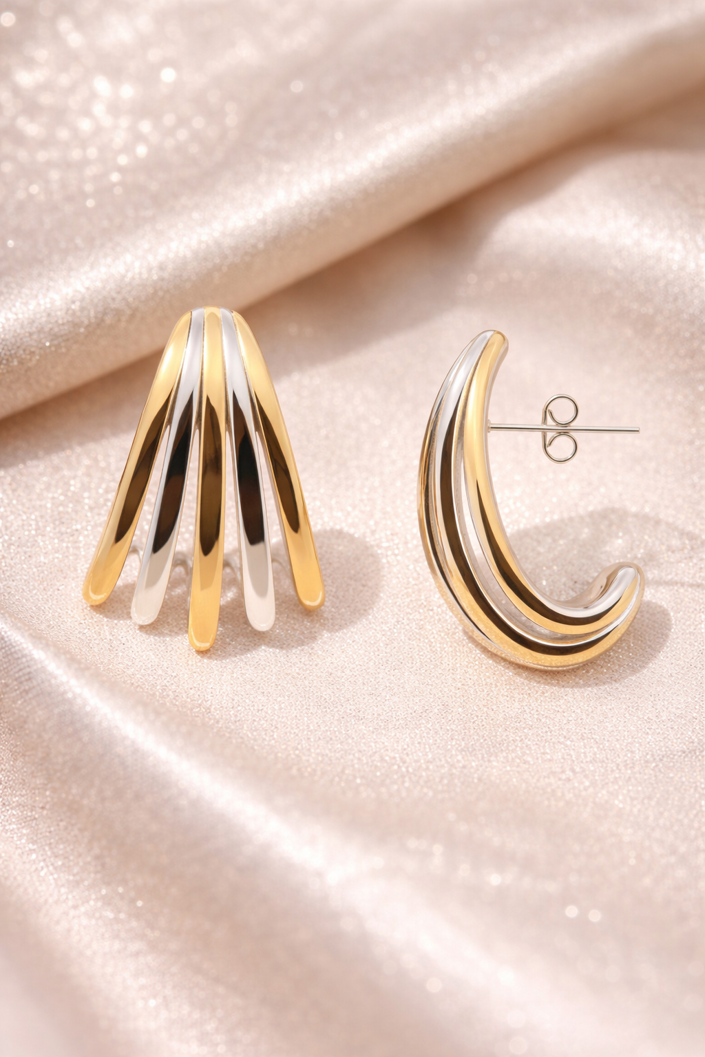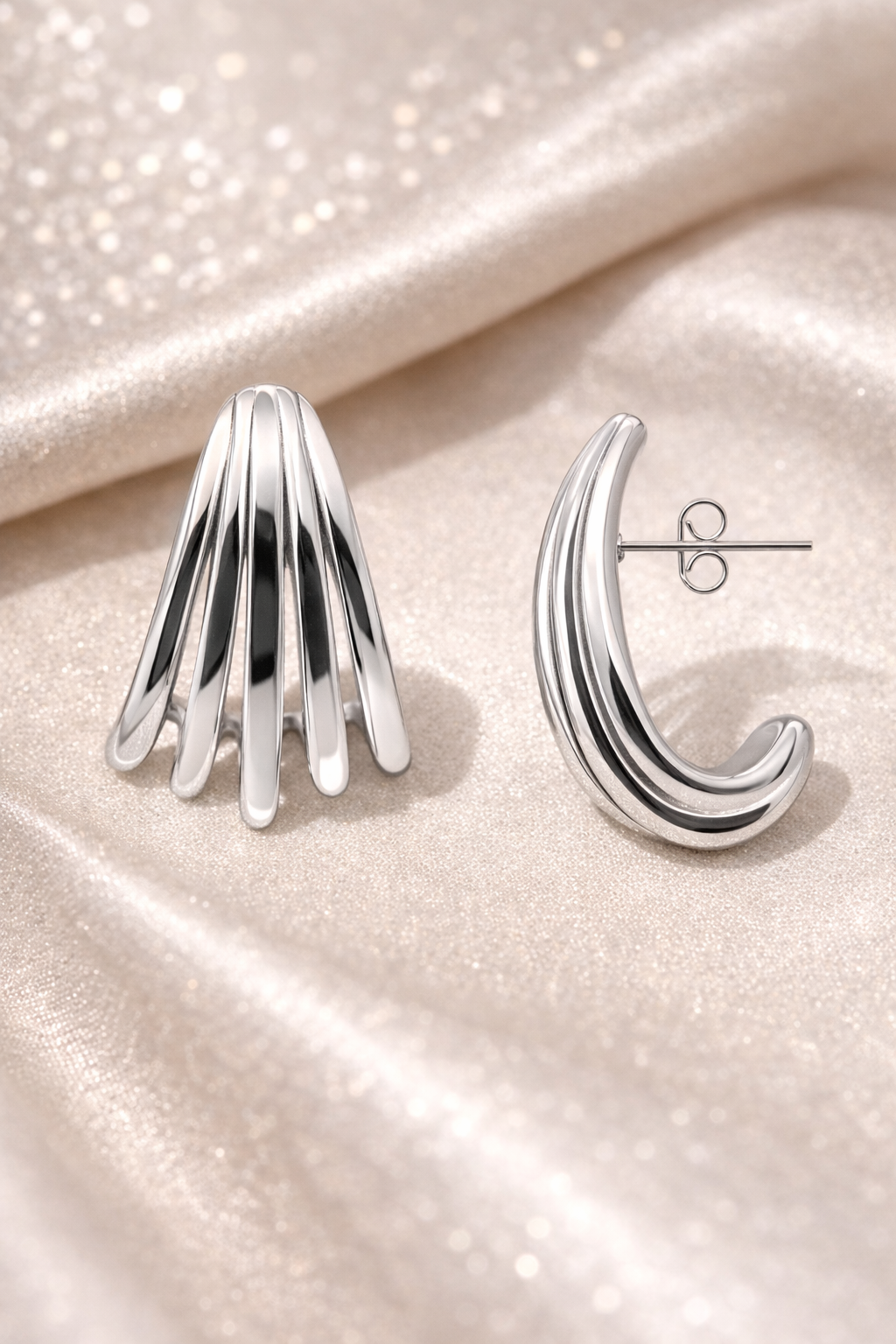 Gli orecchini Shell si distinguono per il loro design scultoreo e fluido, ispirato alle forme morbide e avvolgenti delle conchiglie. La struttura a ventaglio crea un elegante gioco di volumi e riflessi, rendendoli un accessorio di carattere ma facile da indossare ogni giorno.