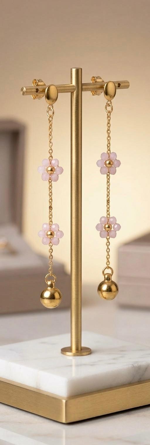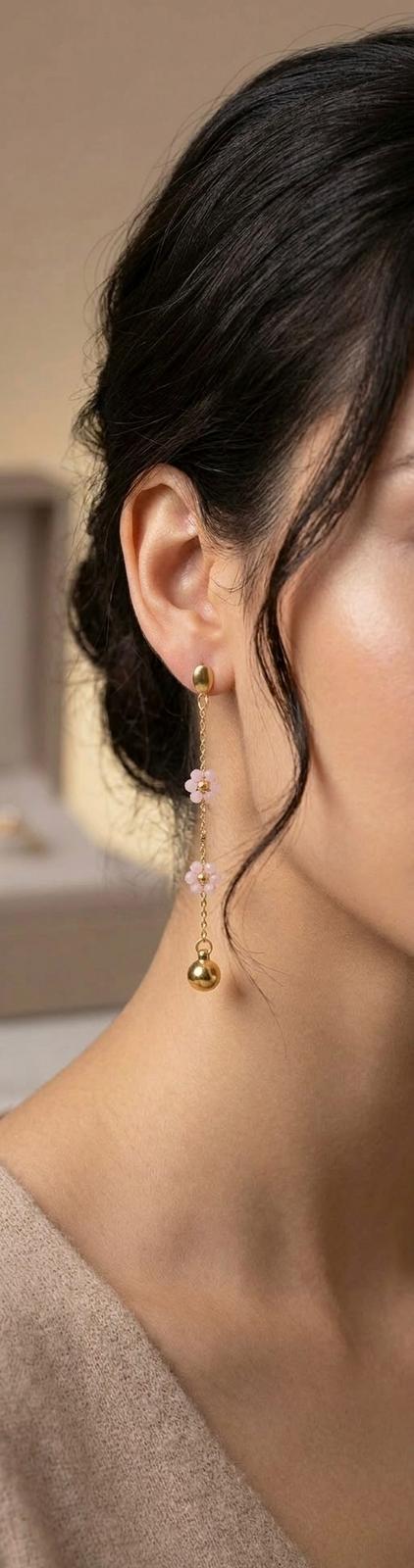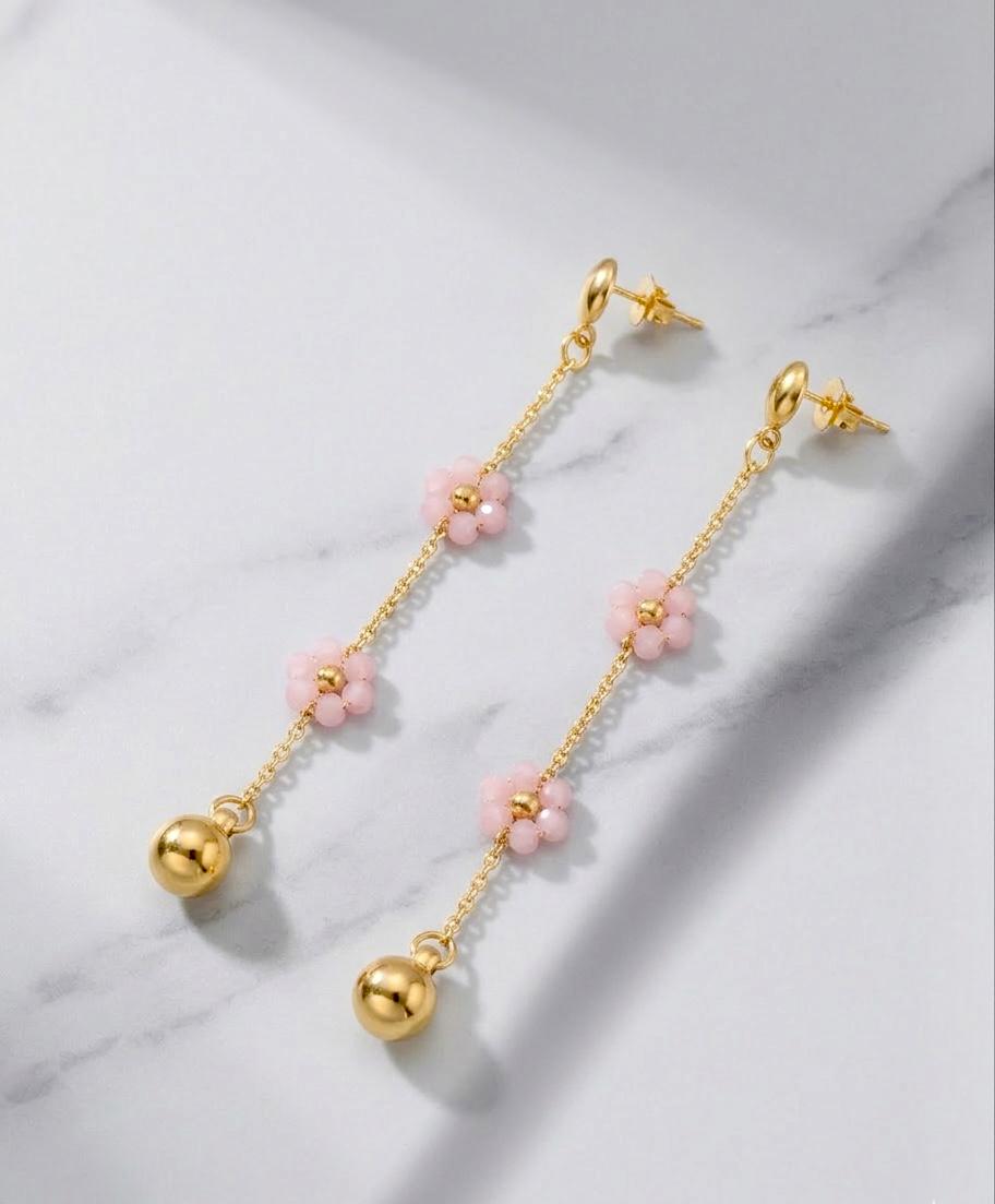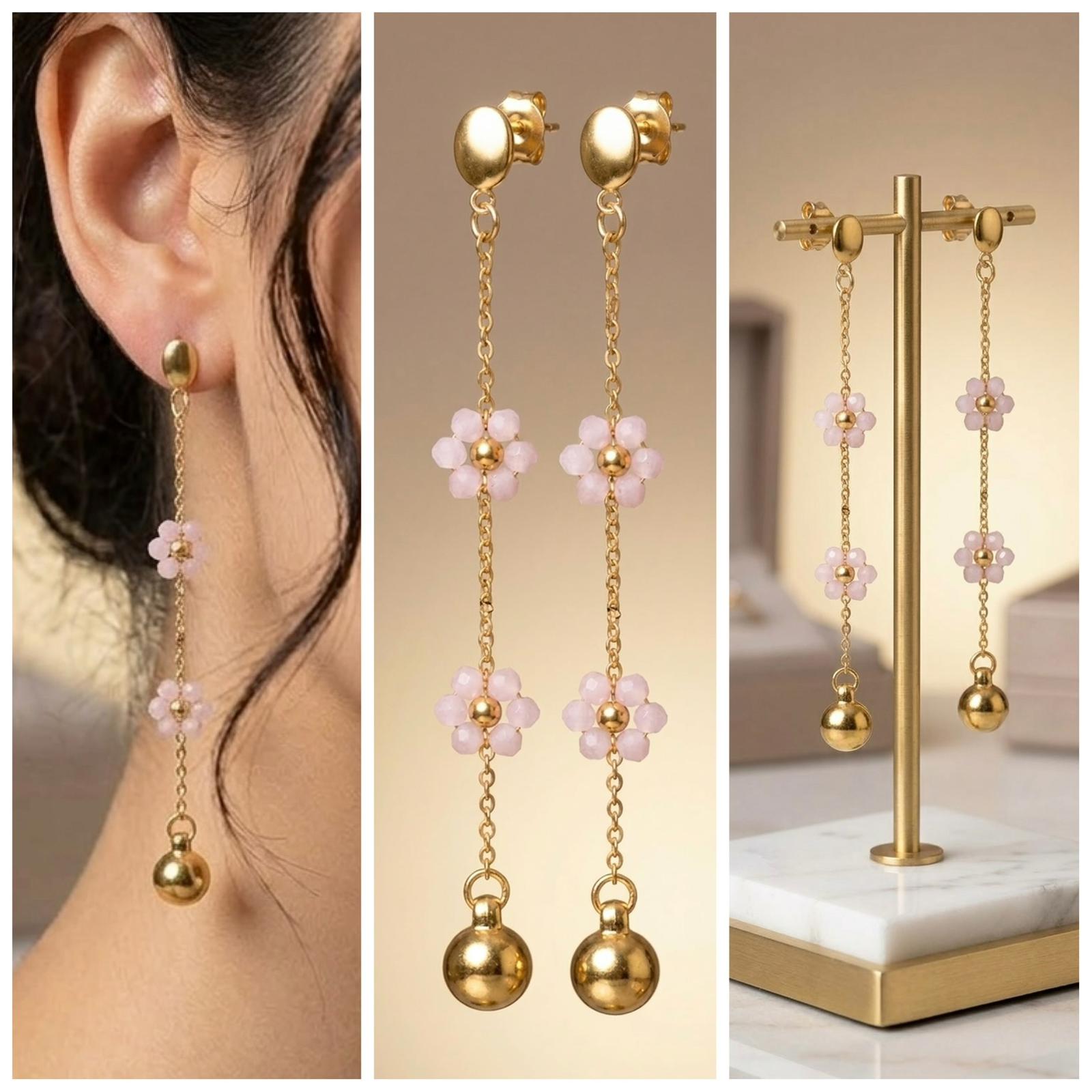 Gli Orecchini Spring sono realizzati a mano nel nostro laboratorio in acciaio, pensati per chi ama dettagli delicati e raffinati. La catena sottile è decorata con piccoli fiori rosa che richiamano la freschezza della primavera, mentre la sfera dorata finale aggiunge luce e movimento. Leggeri ed eleganti, sono perfetti per ogni occasione. Edizione limitata.